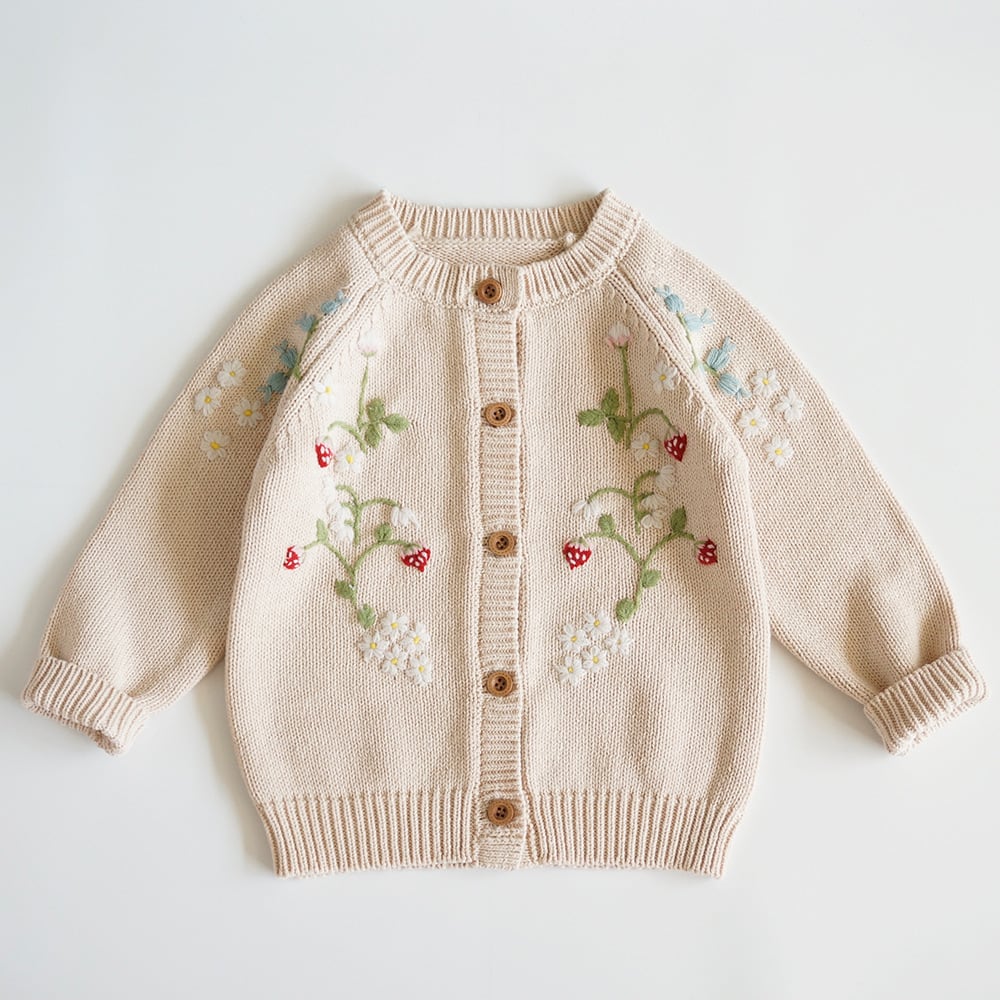 新品 ピンク アイボリー 二色 イチゴ刺繍 カーディガン