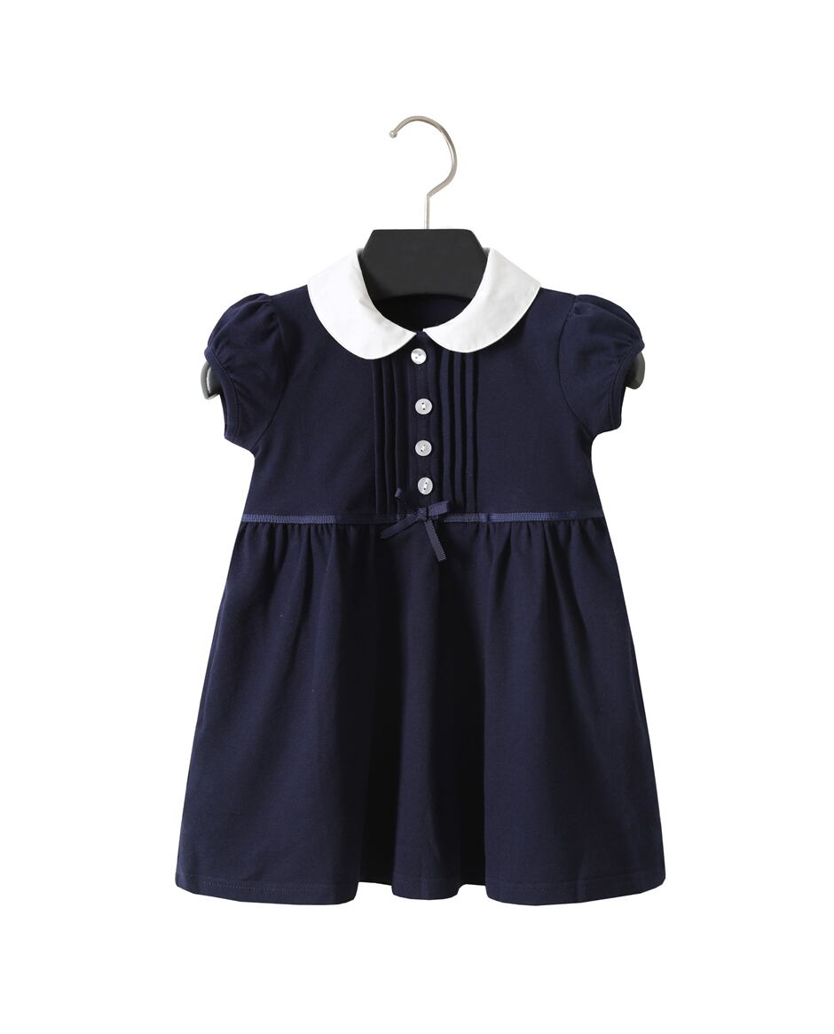 【即納】(80〜130cm) 半袖 ネイビー 鹿の子 前ボタン ワンピース
