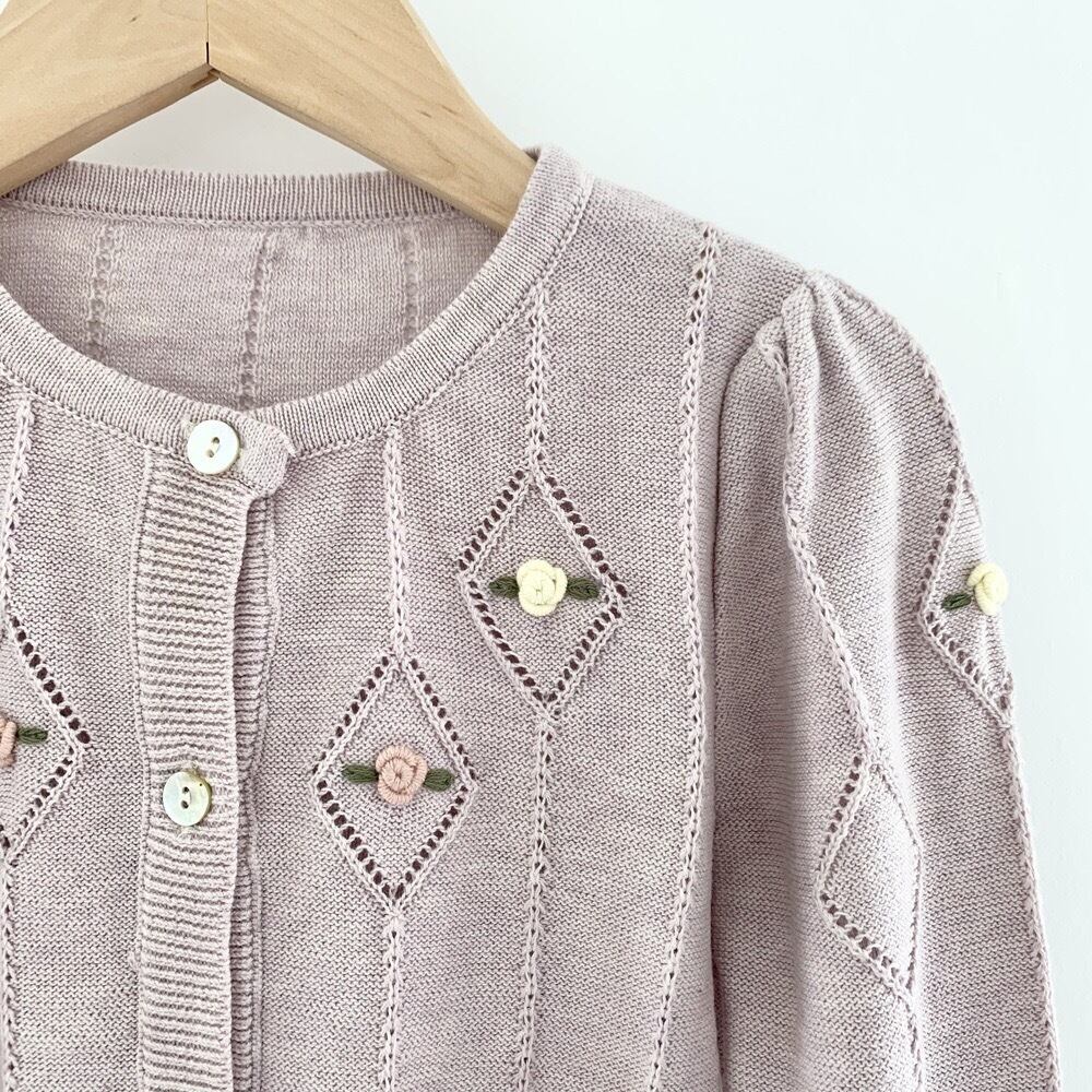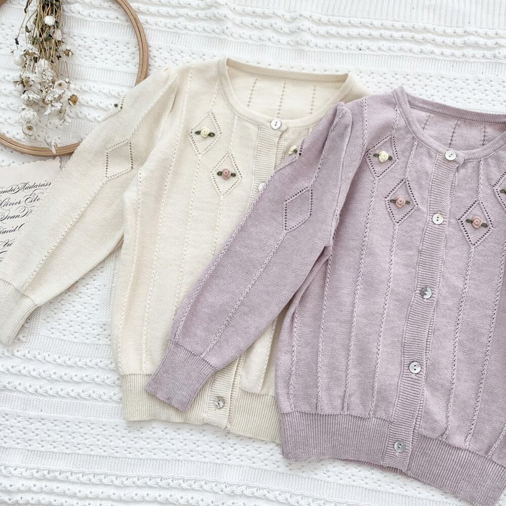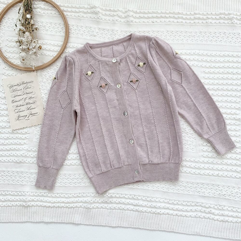 ★新品 アイボリー ラベンダー 二色 手刺繍 カーディガン