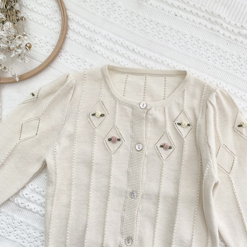一針一針の手刺繍立体薔薇刺繍がとても素敵なカーディガンです。