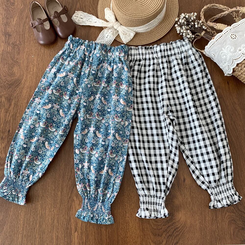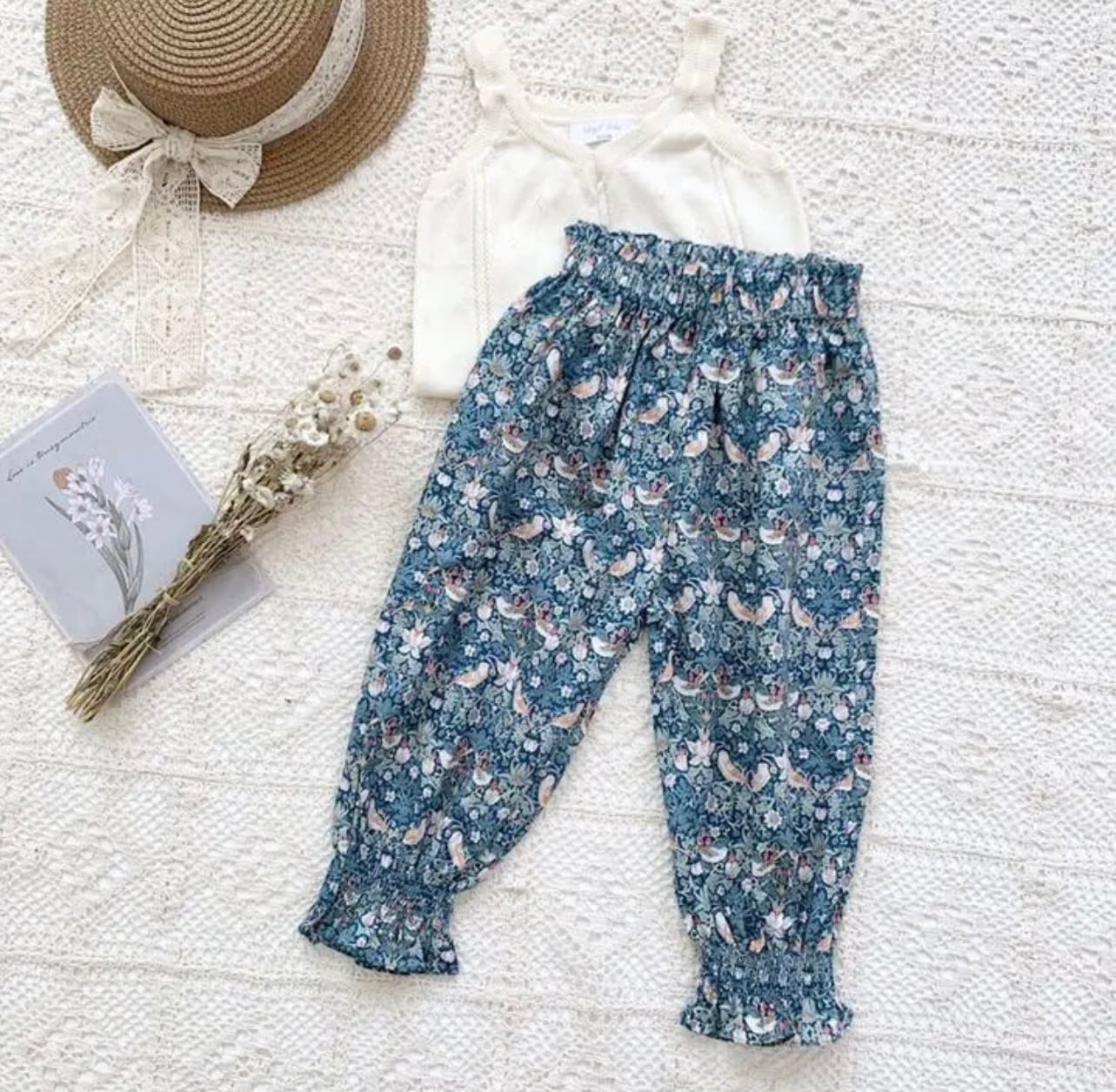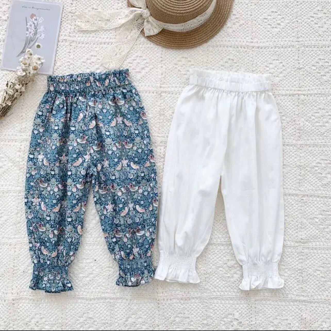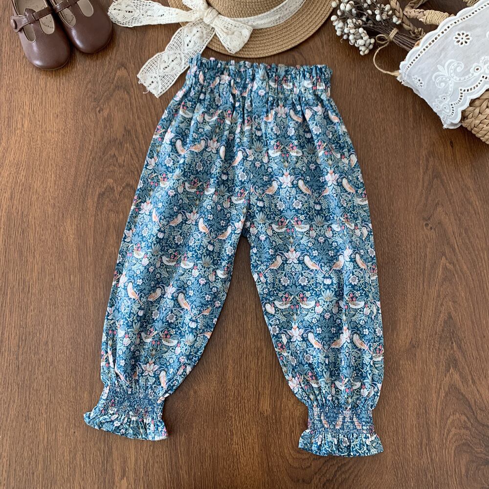 【即納】(90〜140cm)ブルー 小鳥柄 ズボン