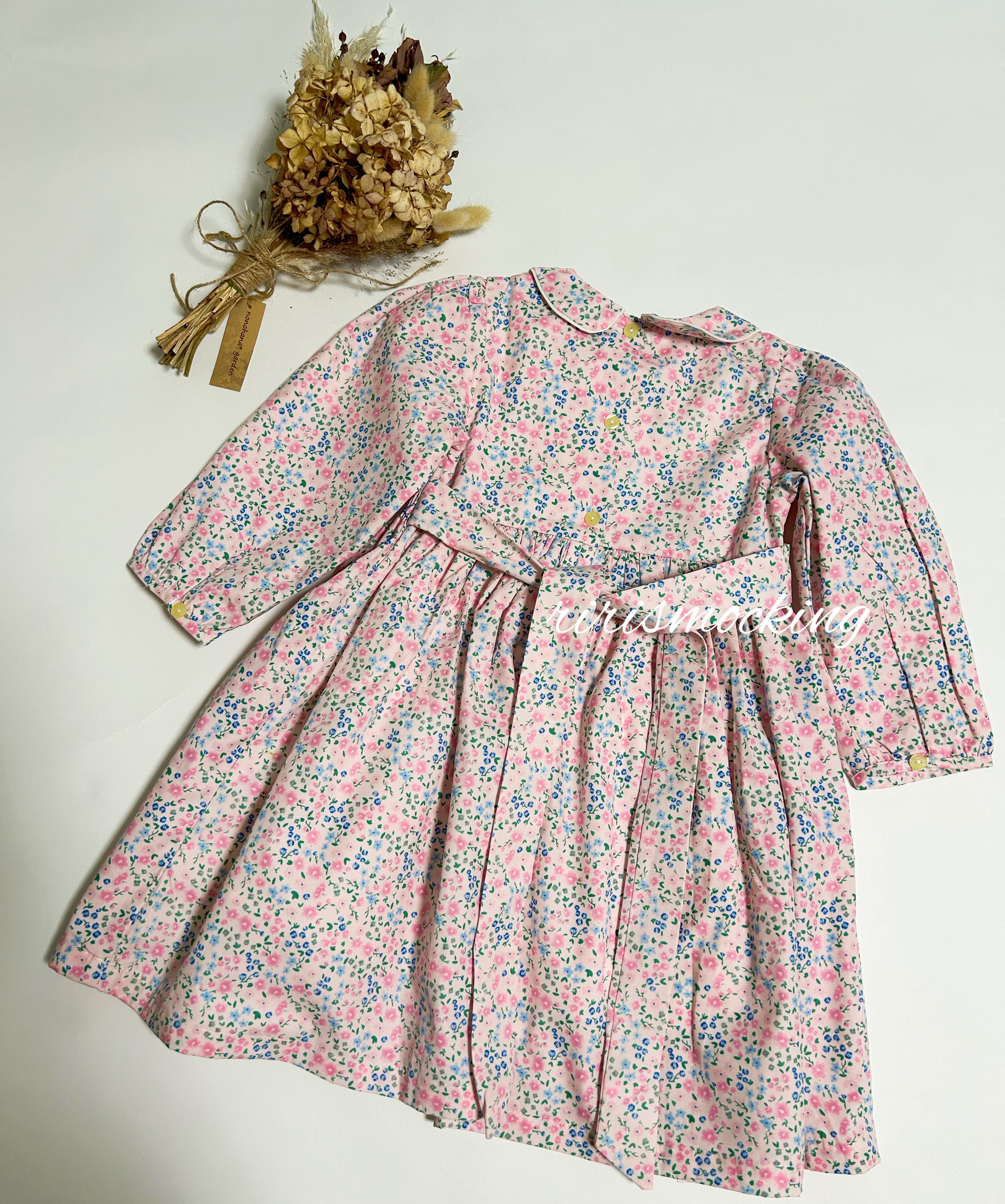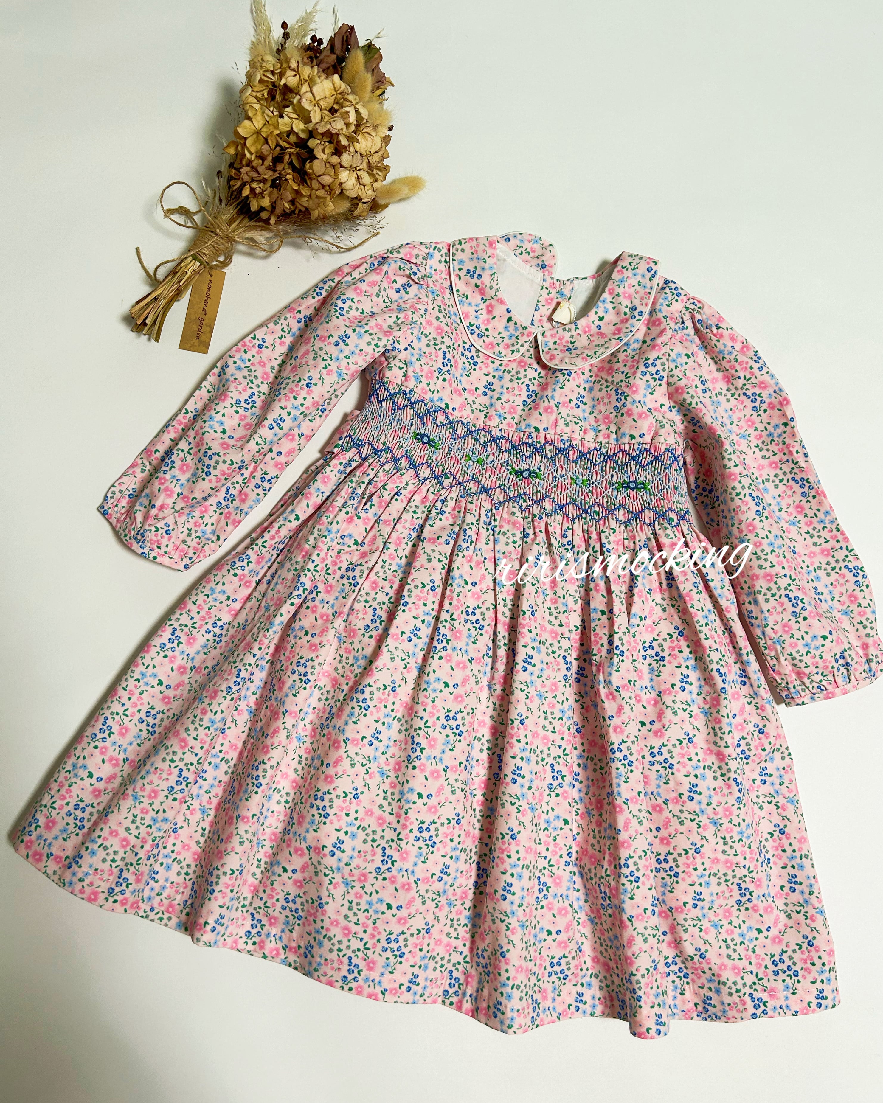 【即納】(80〜140cm)ピンク 小花柄 スモッキング ワンピース