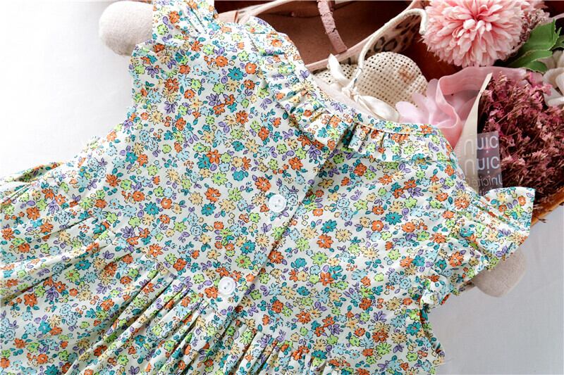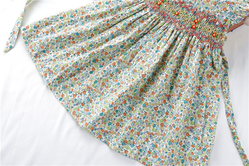 新品 グリーン 花柄 スモッキング ジャンパースカート ワンピース