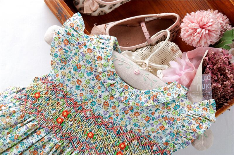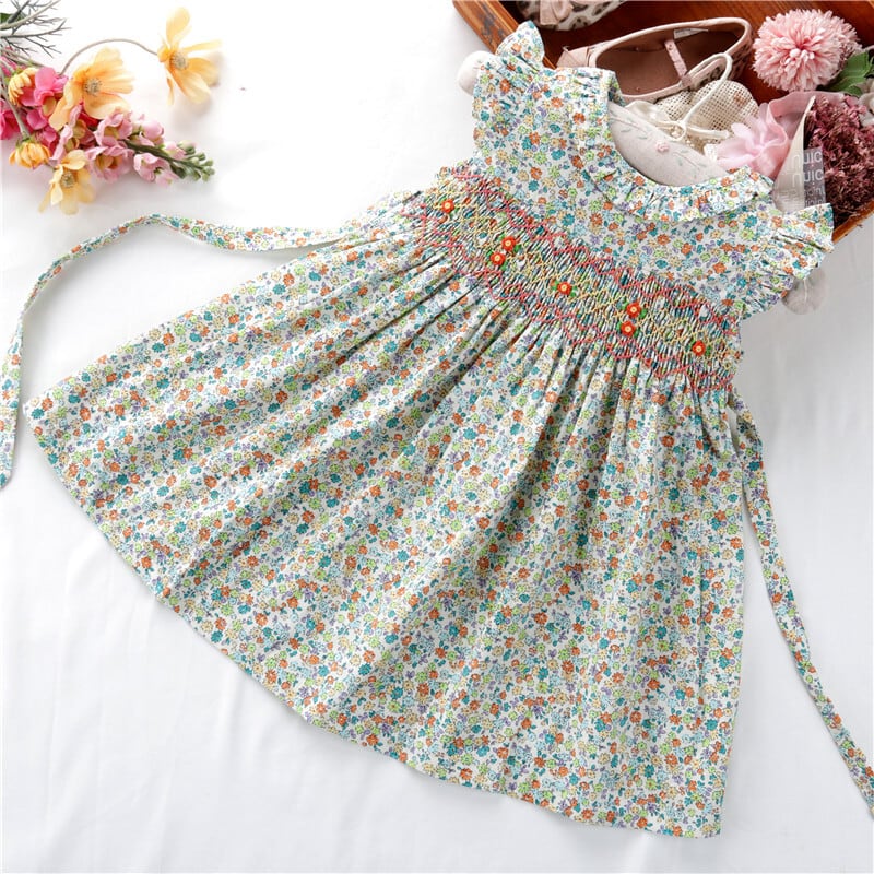 【即納】(80〜140cm) ノースリーブ スモッキング ワンピース