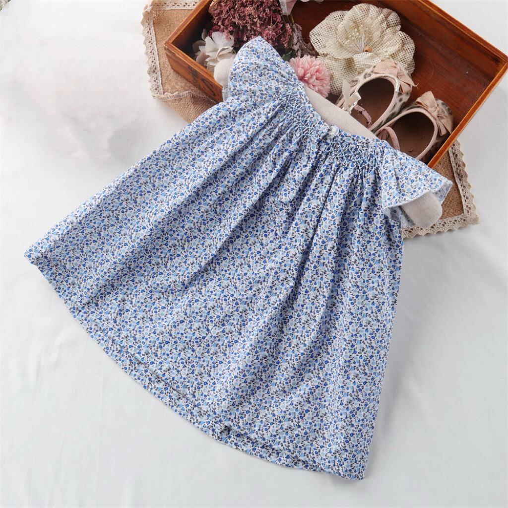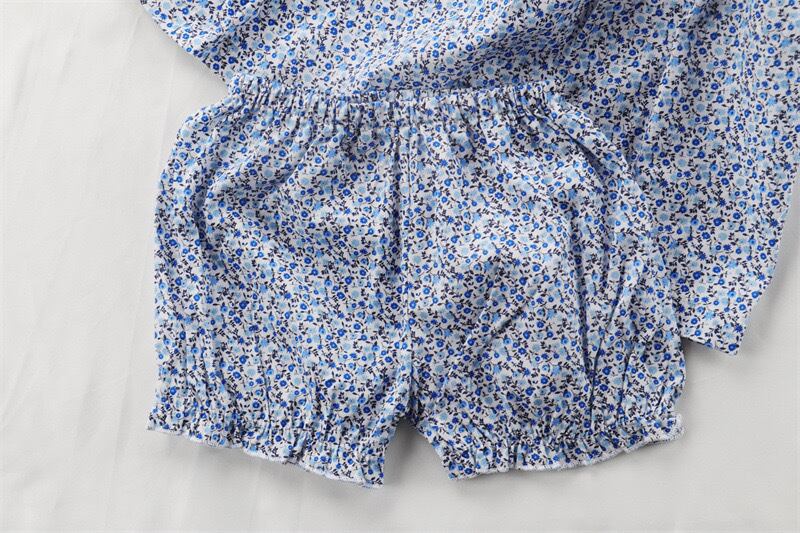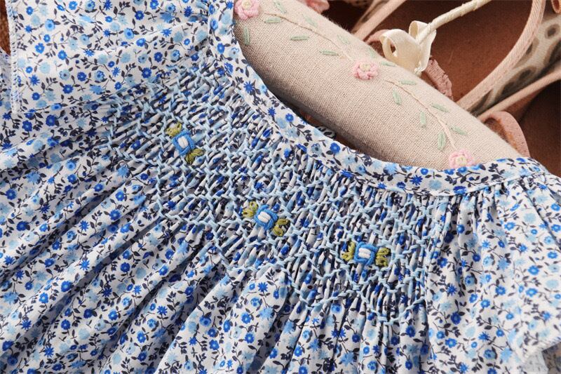 【即納】(80〜110cm)新作 水色 小花柄 スモッキング ワンピース かぼちゃパンツ