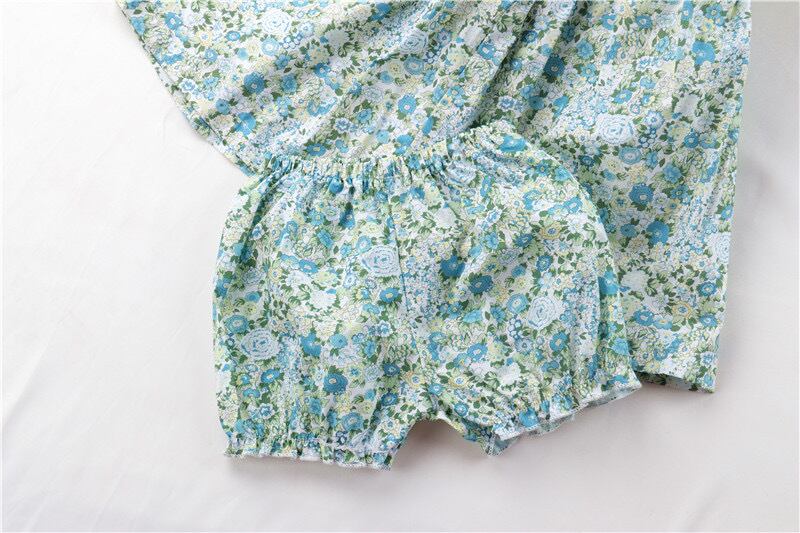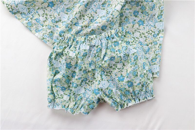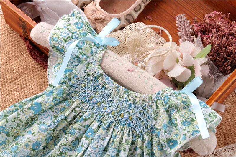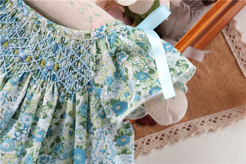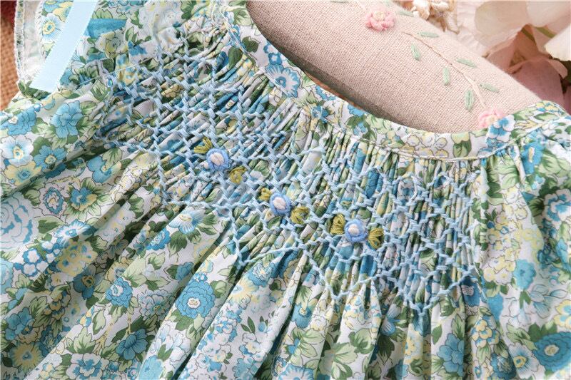 【即納】(80〜110cm) 新作 ブルー 小花柄 スモッキング セットアップ