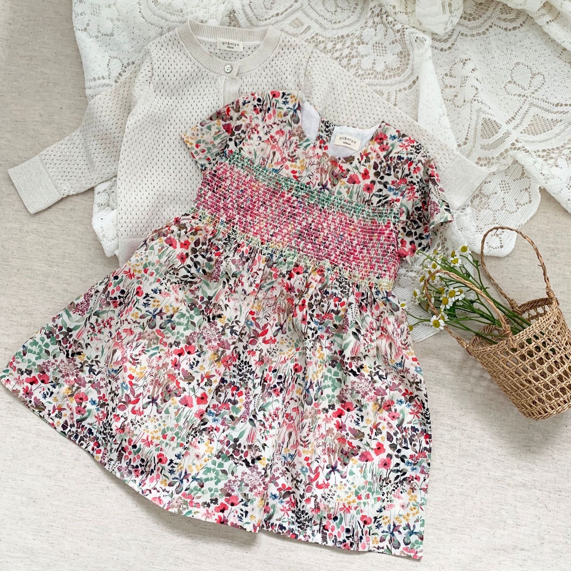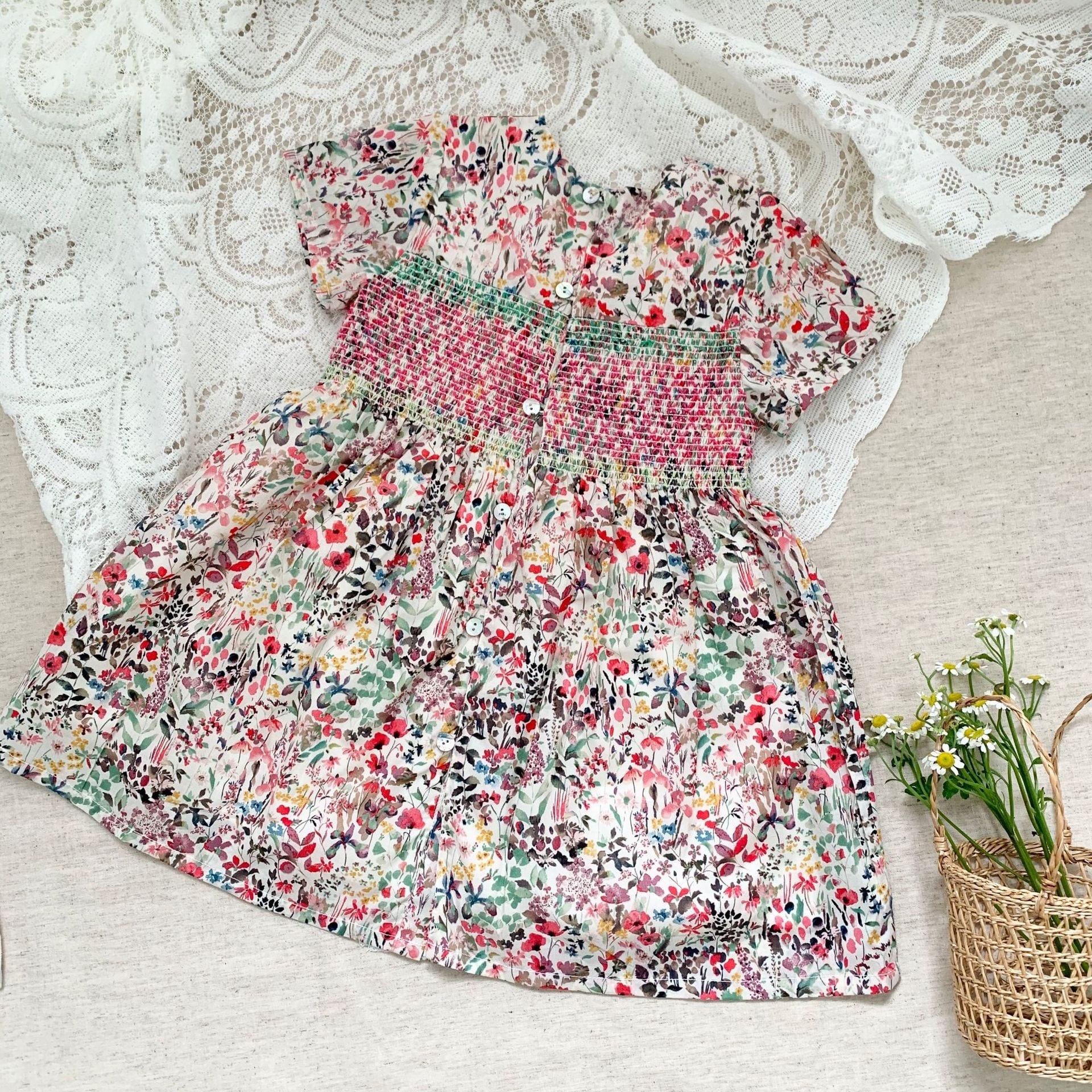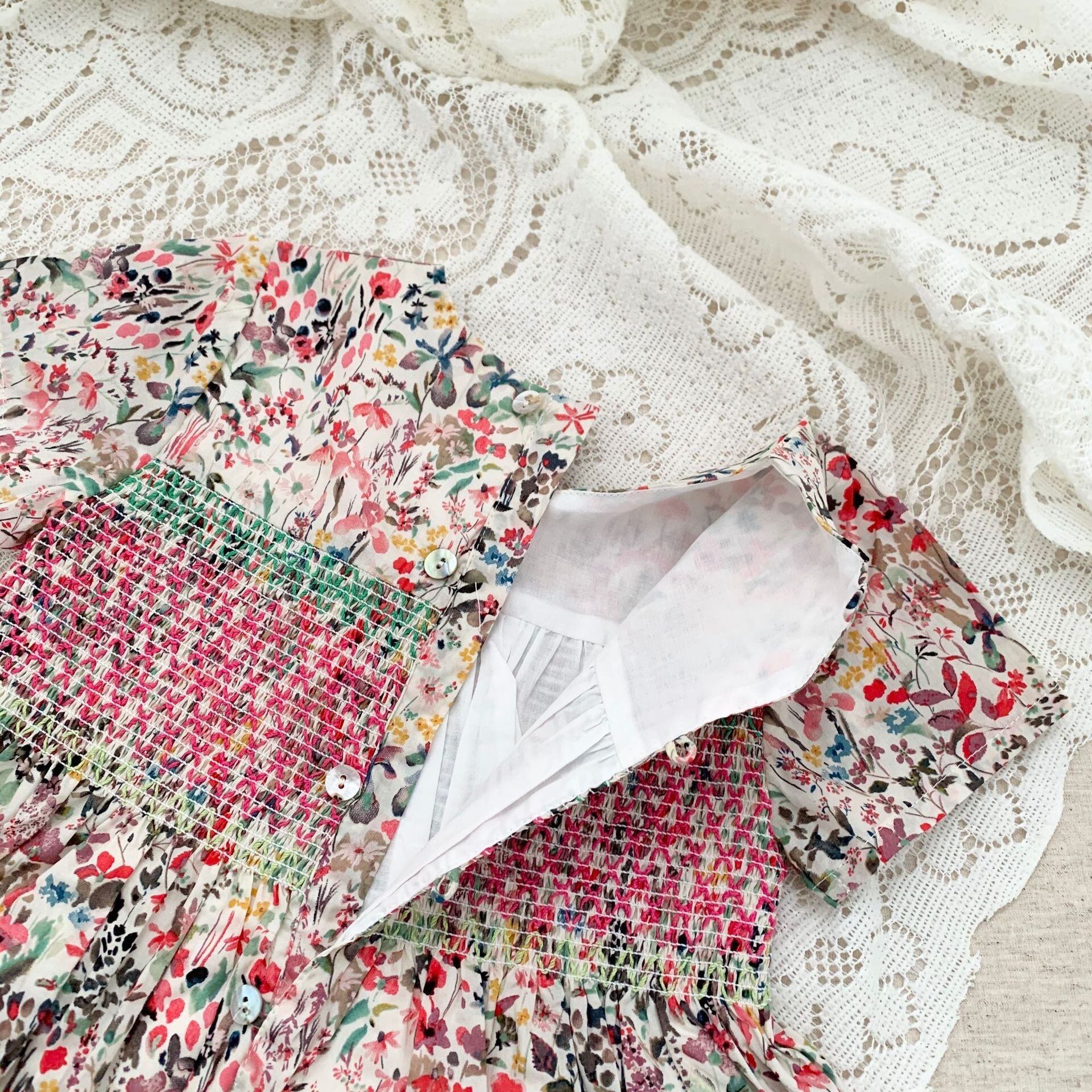 【即納】80〜130cm シャーリング 花柄 ワンピース