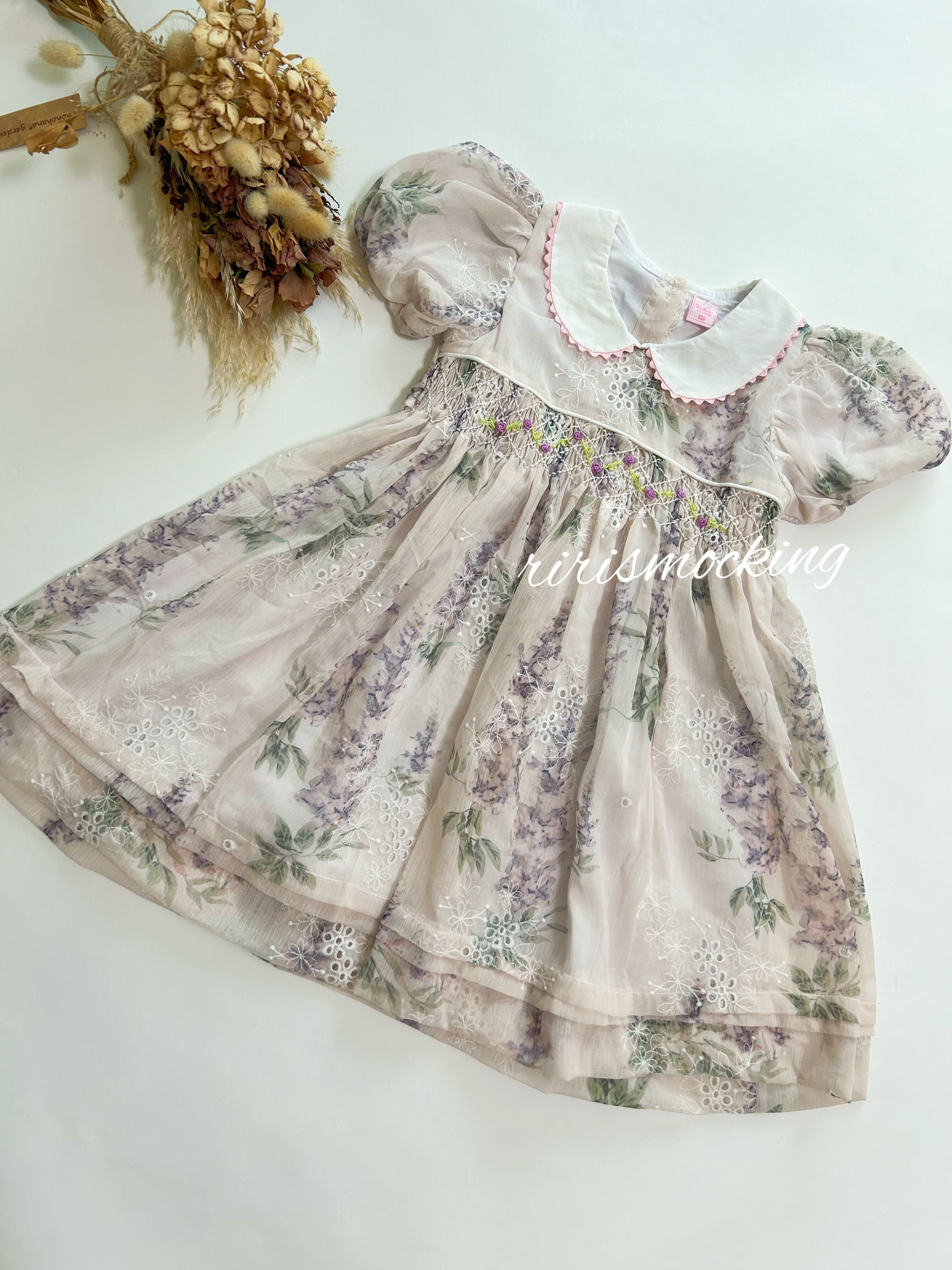 【即納】(80〜95cm) 紫陽花 スモッキング ドレス
