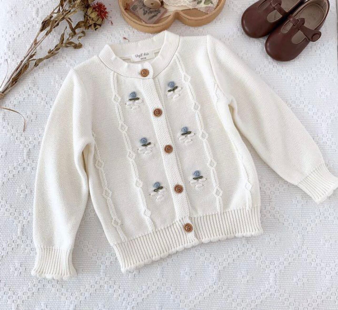 【即納】(90〜140) 2色 薔薇 刺繍 カーディガン