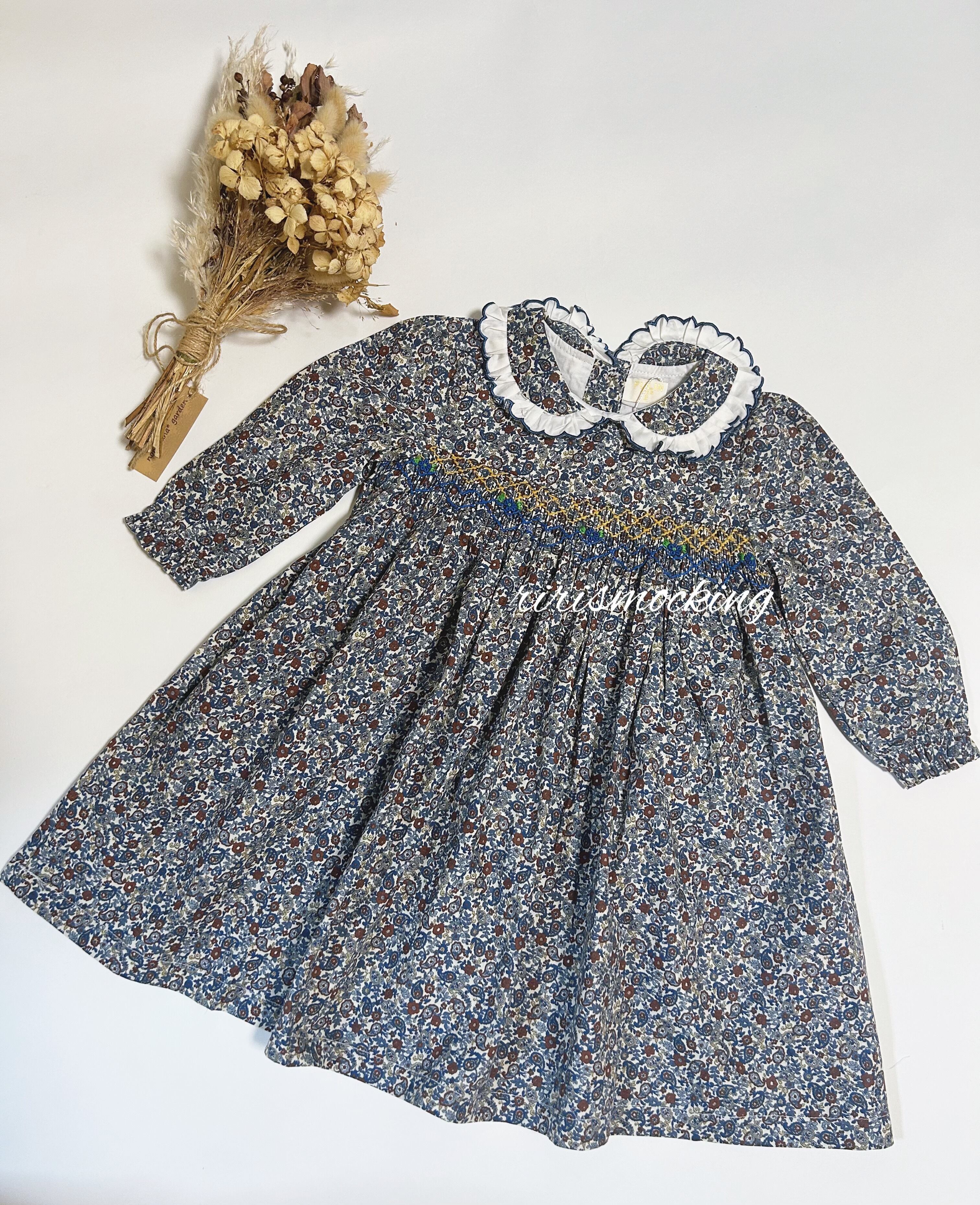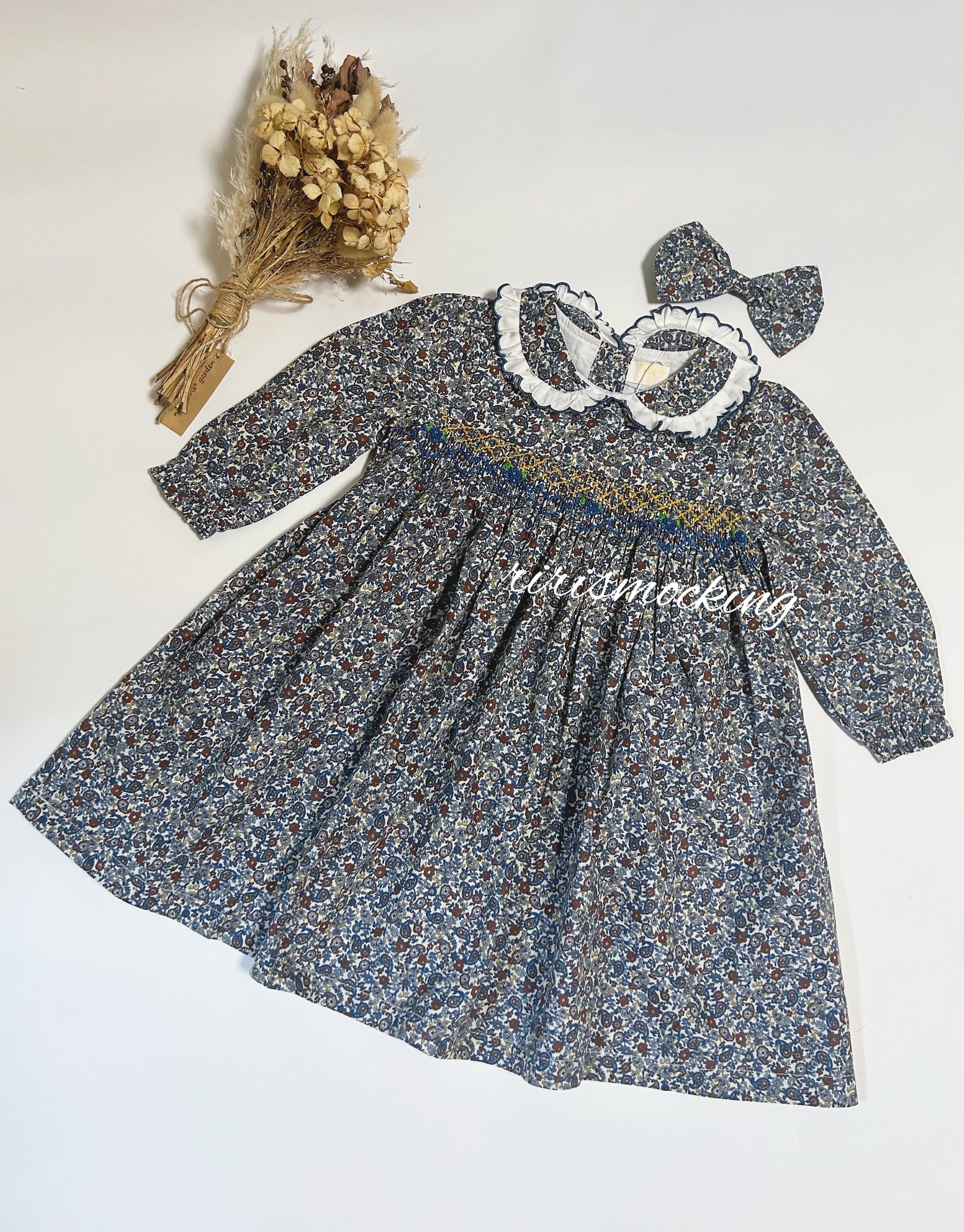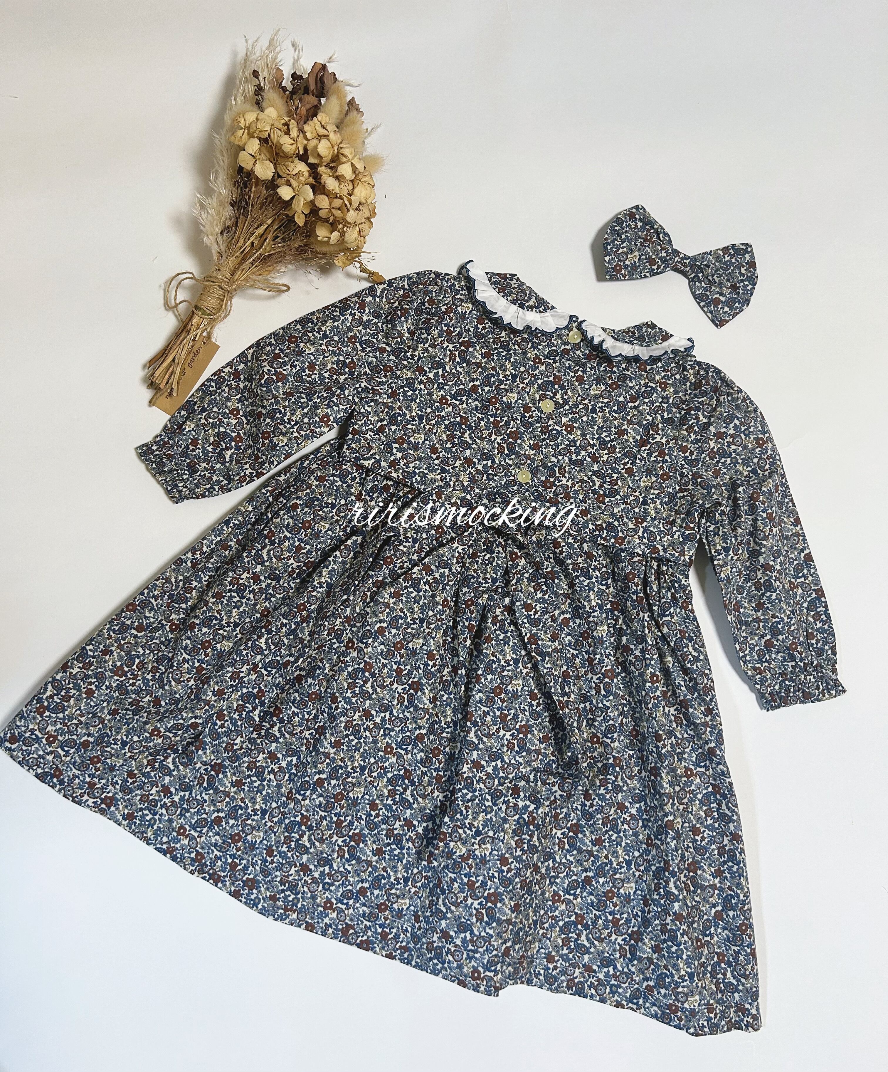新品 花柄 リボン付き 春 スモッキング ワンピース